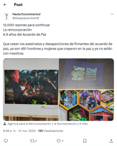 1 - Garantizar el cumplimiento pleno e integral del Acuerdo Final de Paz, 2 - Garantizar la seguridad de las y los excombatientes de las FARC-EP, así como su reincorporación económica, social y política, 7 - Realizar los ajustes necesarios a la política de restablecimiento de derechos y de reintegración, 15 - Promover diálogos locales y regionales que incentiven la participación.