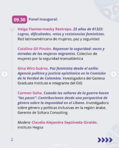 🎗️ Conmemoramos los 25 años de la Resolución 1325 del Consejo de Seguridad de la ONU, reconociendo el papel de las mujeres migradas y exiliadas en la construcción de paz y en la transformación de los conflictos.