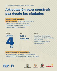 La Fundación Ideas para la Paz invita a la conversación sobre el rol de las ciudades en la construcción y consolidación de La Paz.