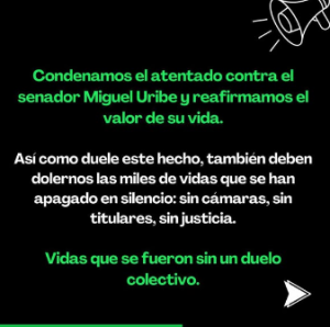 Rechazamos el atentado contra el senador Miguel Uribe y recordamos que todas las vidas importan: