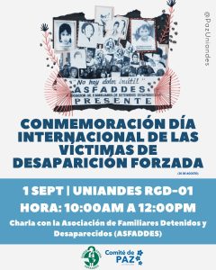 🕊 En el marco de la conmemoración del día internacional de los desaparecidos acompañanos en una charla educativa guiada por la Asociación de Familiares de Detenidos y Desaparecidos (ASFADDES) para hablar y reflexionar sobre una realidad histórica y muy actual. 🕊