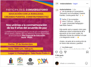 🚀 ¡No te pierdas el Conversatorio “Educación con la Ruralidad: Creando Puentes, Construyendo Paz”! 🌾✨