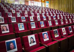 🫶🏽El auditorio de nuestro @centromemoriabogota se llenó con los rostros de algunas mujeres que han sido desaparecidas forzadamente en el país. Sin embargo, el número de sillas se queda corto, pues con todas las mujeres desaparecidas se podría llenar El Campín.
