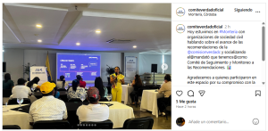 Hoy estuvimos en #Monteria con organizaciones de sociedad civil hablando sobre el avance de las recomendaciones de la @comisionverdadc y socializando el@mandató que tenemos@como Comité de Seguimiento y Monitoreo a las Recomendaciones. 📊