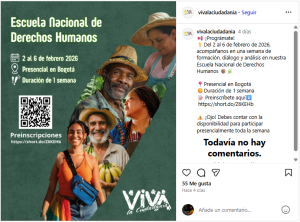 💡Del 2 al 6 de febrero de 2026, acompáñanos en una semana de formación, diálogo y análisis en nuestra Escuela Nacional de Derechos Humanos ✊🏽🌿