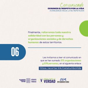 La Mesa por la Verdad, el proceso de Trabajo en Red entre Aliados del Legado de la Comisión de la Verdad y el Comité de Seguimiento y Monitoreo a las recomendaciones de la Comisión de la Verdad, como aliados del trabajo hecho históricamente en la implementación del Acuerdo de Paz con la Comisión de la Verdad, expresamos nuestro rechazo ante las acciones violentas que ha llevado a cabo el ELN en el Catatumbo, y en otros lugares del país como el Chocó, Guaviare y Arauca, y exigimos el respeto por los derechos humanos y el derecho internacional humanitario en estos territorios.
