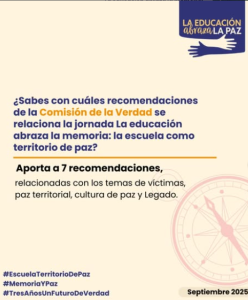🖐🏼🖐🏼 Saludamos a todas las comunidades educativas de Colombia, la segunda fecha conmemorativa de este año es La educación abraza la memoria: la escuela como territorio de paz, que se desarrolla entre el 22 y 26 de septiembre🏫