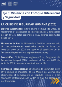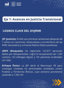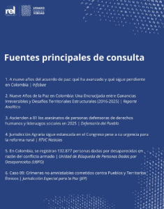 (Fuentes: JEP, UBPD, Defensoría del Pueblo, Indepaz, Infobae, RTVC Noticias.)