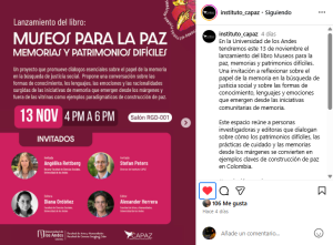 #Memoria #MuseosParaLaPaz #PatrimoniosDificiles #ConstrucciónDePaz #JusticiaSocial #CAPAZ #UniversidadDeLosAndes