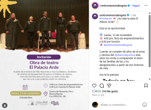 Cuando se cumplen 40 años de la toma y retoma del #palaciodejusticia esta obra nos invita a comprender el dolor de las familias de las y los desaparecidos a partir de dos historias de vida.