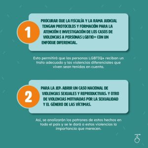 🏳️🌈🕊️La @comisionverdadc emitió recomendaciones al Estado colombiano para la reparación y la no repetición. Hoy te contamos algunas de ellas que buscan el acceso a justicia por parte de las personas #LGBTIQ+.