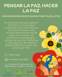 Charlemos sobre paz!! Desde diversas voces reflexionaremos sobre cultura de paz, iniciativas de paz y formas de articulación para la búsqueda de agenda de paz