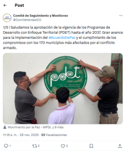 1/5 | Saludamos la aprobación de la vigencia de los Programas de Desarrollo con Enfoque Territorial (PDET) hasta el año 2037. Gran avance para la implementación del #AcuerdoDePaz y el cumplimiento de los compromisos con los 170 municipios más afectados por el conflicto armado.