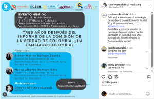 Conéctate y conversa con dos de nuestros integrantes sobre qué ha cambiado en Colombia tres años después del Informe Final de la Comisión de la Verdad.